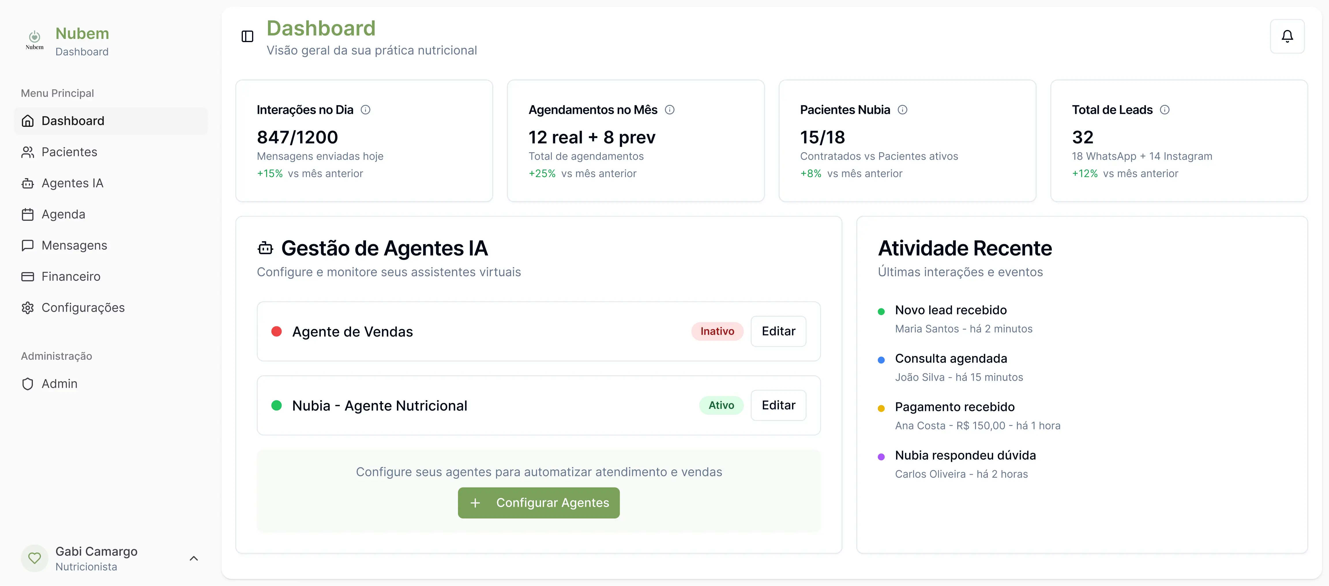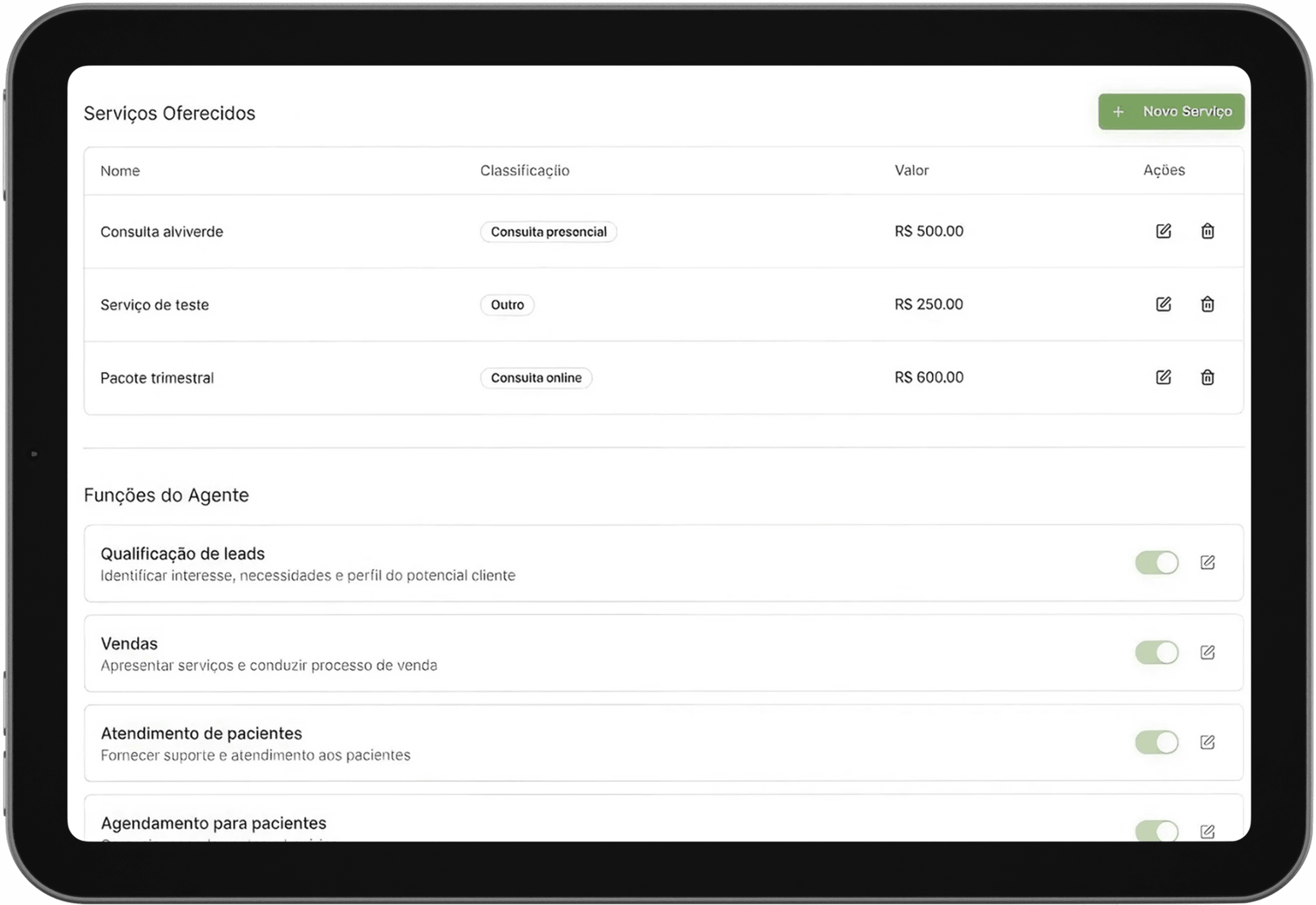 Depois de configurado basta ativar o seu agente e pronto! Ele iniciará os seus atendimentos e você terá gestão completa para visualizar conversas, integrar com agenda e outras funcionalidades adicionais.
